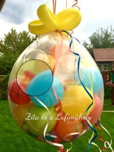 A gyerekek imádják a lufipinyátát, mindig azon megy a verseny, ki durrantsa ki:) Tele van édességgel, kis lufikkal, színes dekorációval, amiket sikongatva szaladnak gyűjtögetni.
